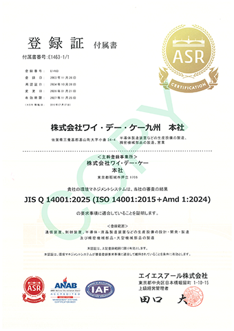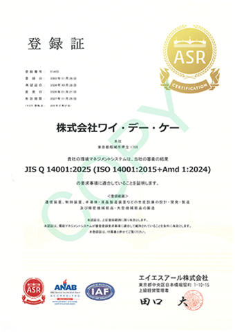 ワイ・デー・ケーグループにおいて、環境マネジメントシステムの国際標準規格であるISO14001の認証を取得しました。